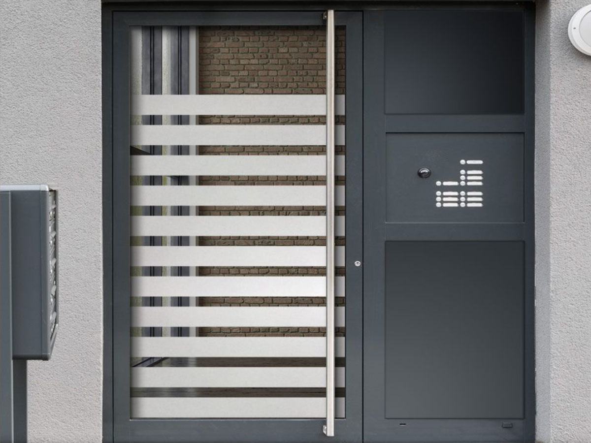 Eine Sichtschutzfolie ist ein selbstklebender Aufkleber aus einer Hochleistungsfolie (Glasdekorfolie) mit einem edlen Sandstrahleffekt, geeignet für glatte Glasflächen. Optisch vergleichbar mit geätztem Glas bzw. Milchglas ist die Sichtschutzfolie blickdicht und dennoch 70% lichtdurchlässig. Tageslicht geht somit kaum verloren. Die Sichtschutzfolie ist konturgeschnitten, ohne Hintergrund und wird montagefertig mit Übertragungspapier geliefert. Dort, wo das Motiv/Text negativ ausgeschnitten ist, bleibt die Glasfläche sichtbar.