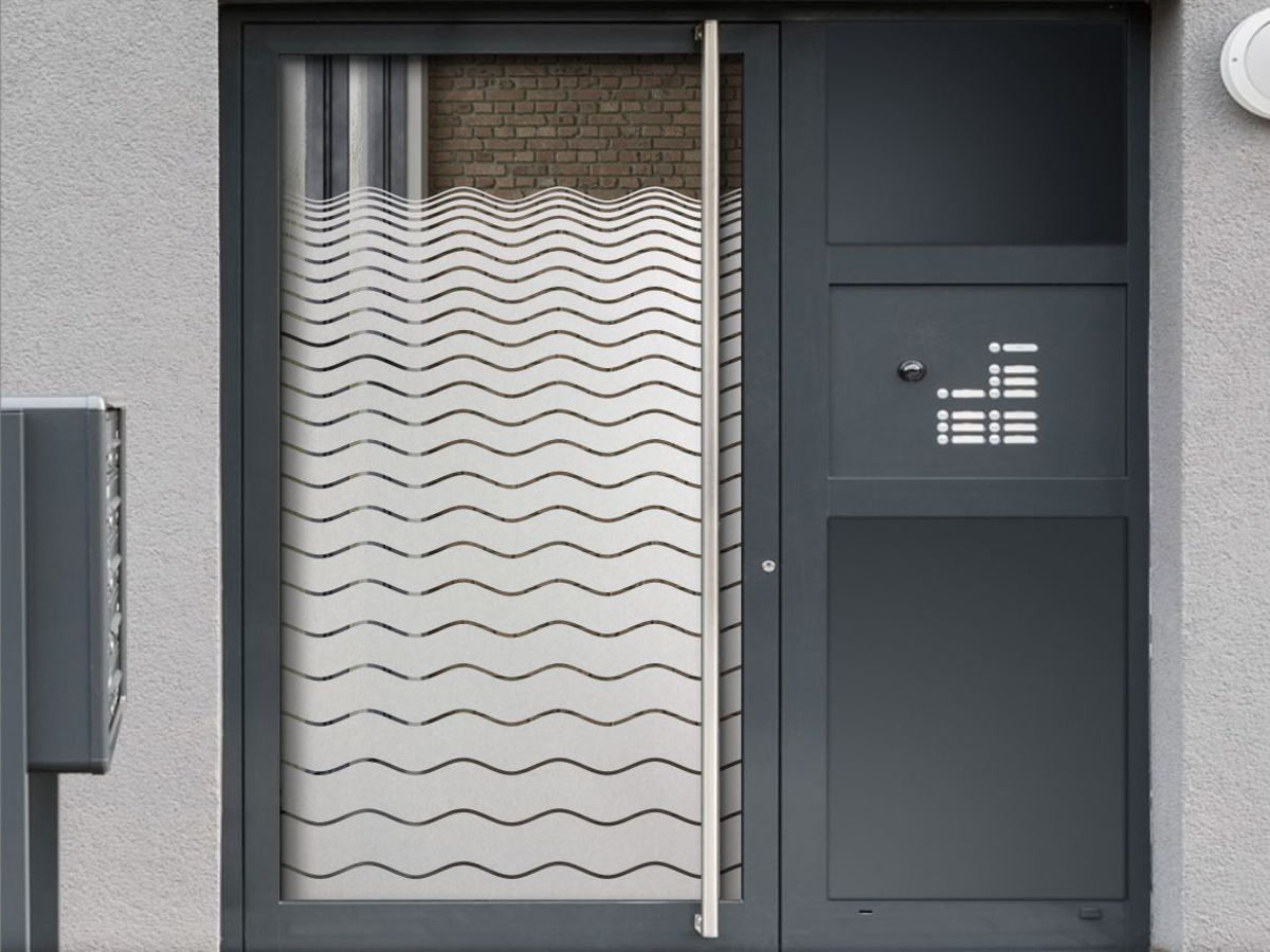 Eine Sichtschutzfolie ist ein selbstklebender Aufkleber aus einer Hochleistungsfolie (Glasdekorfolie) mit einem edlen Sandstrahleffekt, geeignet für glatte Glasflächen. Optisch vergleichbar mit geätztem Glas bzw. Milchglas ist die Sichtschutzfolie blickdicht und dennoch 70% lichtdurchlässig. Tageslicht geht somit kaum verloren. Die Sichtschutzfolie ist konturgeschnitten, ohne Hintergrund und wird montagefertig mit Übertragungspapier geliefert. Dort, wo das Motiv/Text negativ ausgeschnitten ist, bleibt die Glasfläche sichtbar.