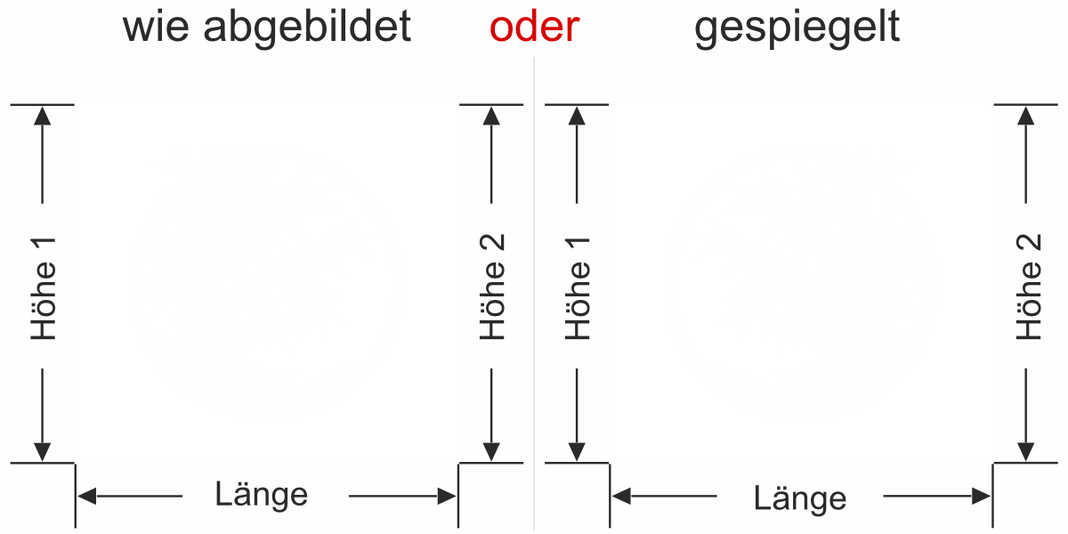 Anschließend tragen Sie die Maße in der Bestellmaske in die Kästchen „Höhe 1“ und „Höhe 2“ sowie „Länge“ ein.