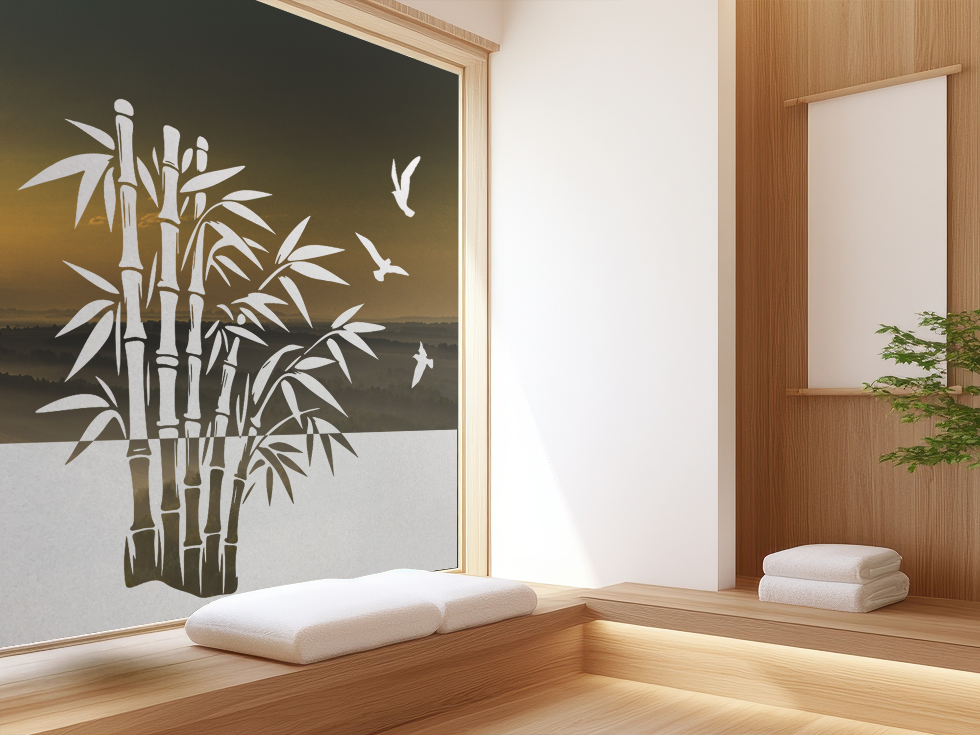 Fensterfolie Bambusstrauch und Vögel