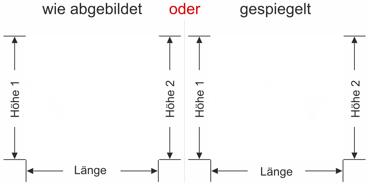 gespiegelt = Motiv/Text von innen geklebt und von außen lesbar