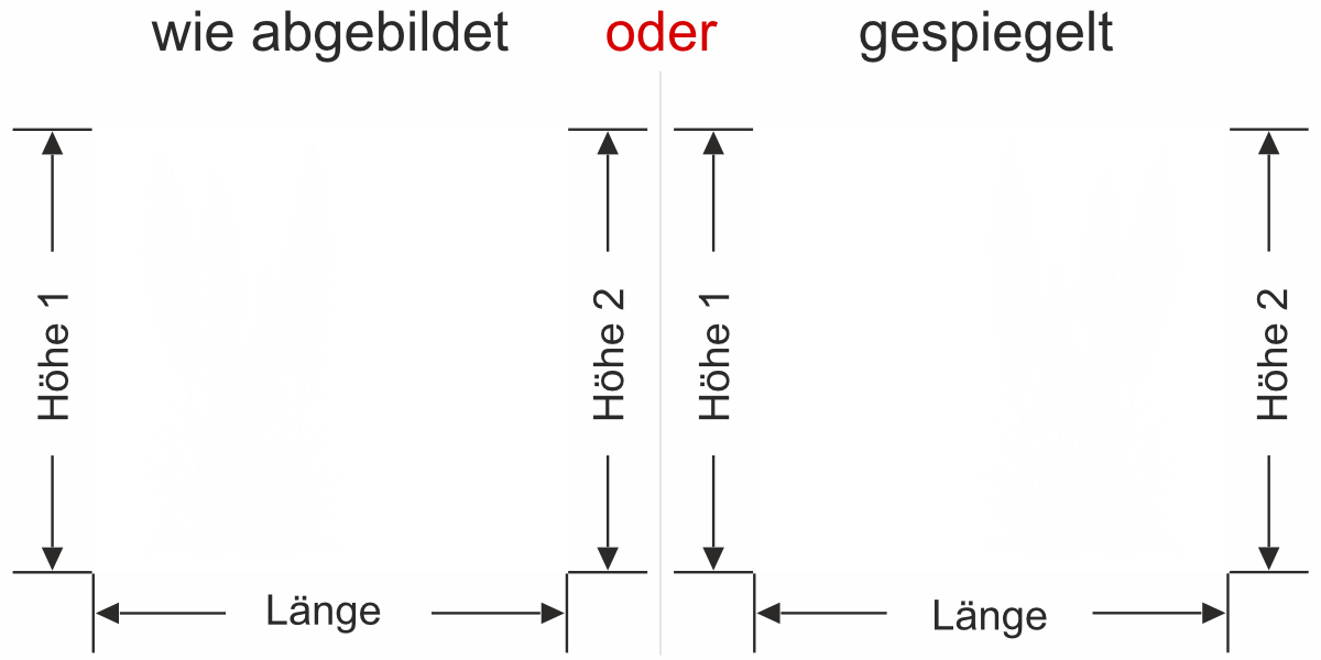 Anschließend tragen Sie die Maße in der Bestellmaske in die Kästchen „Höhe 1“ und „Höhe 2“ sowie „Länge“ ein.