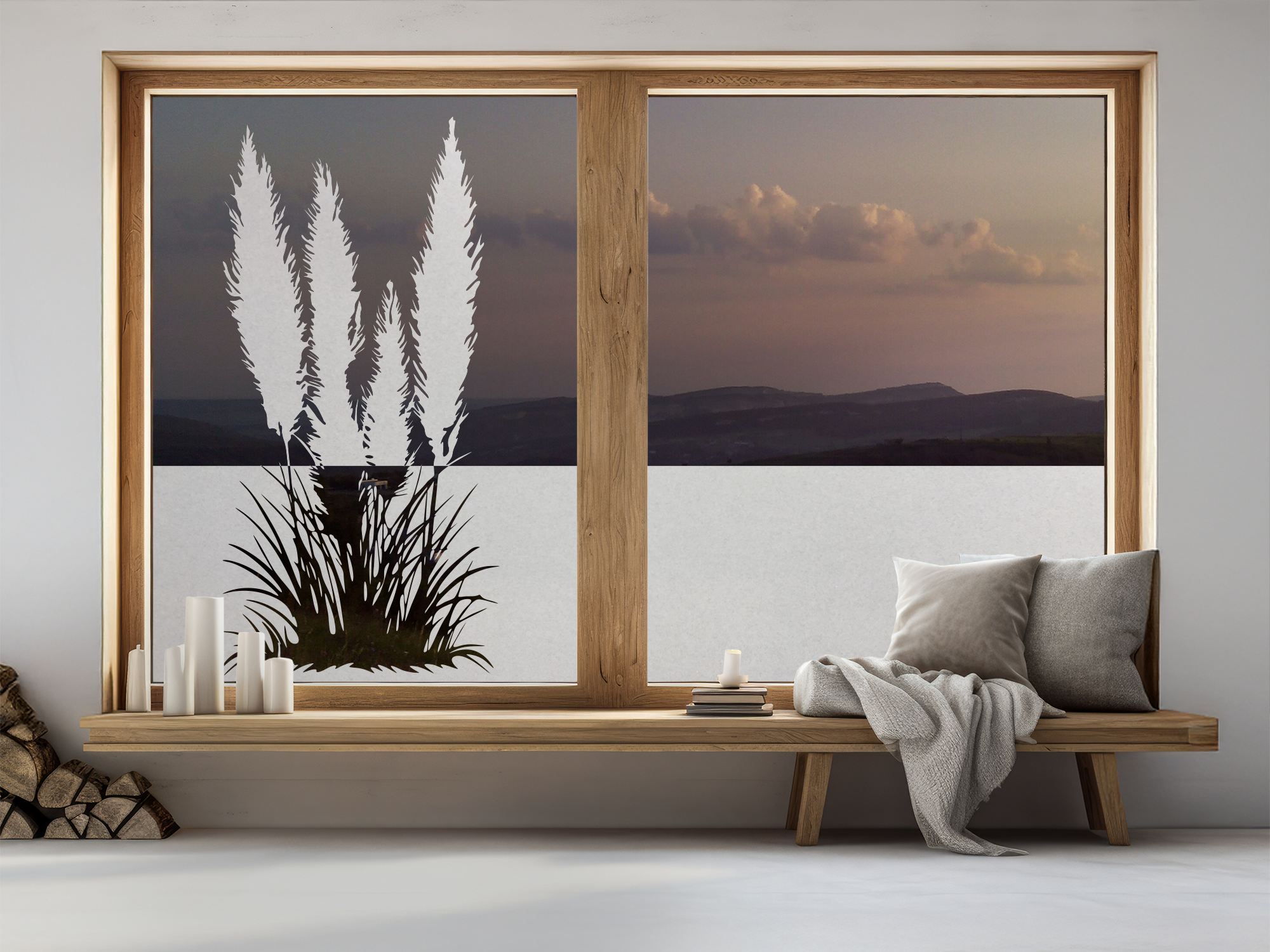 Fenster Sichtschutzfolie mit einem dekorativen Pampasgrasmotiv