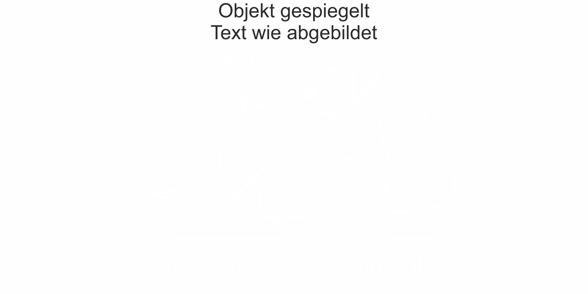 Objekt gespiegelt, Text wie abgebildet = Motiv/Text von außen geklebt und von außen lesbar, jedoch Motiv auf der anderen Seite