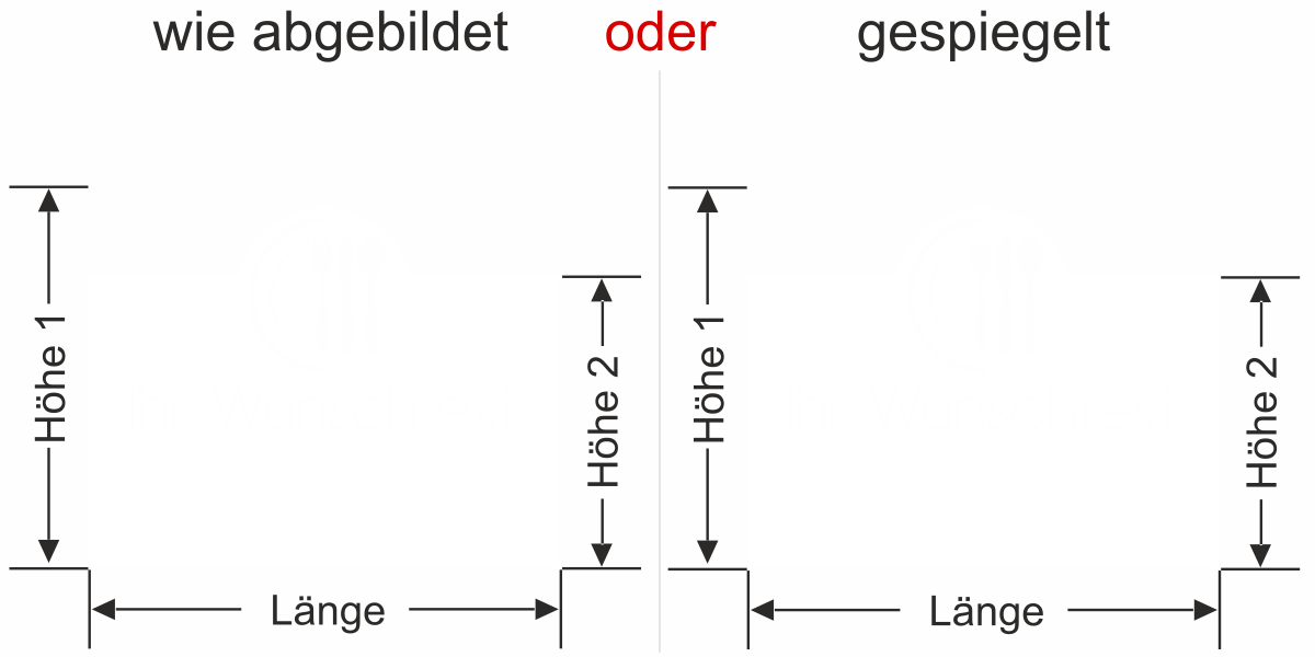 Anschließend tragen Sie die Maße in der Bestellmaske in die Kästchen „Höhe 1“ und „Höhe 2“ sowie „Länge“ ein.