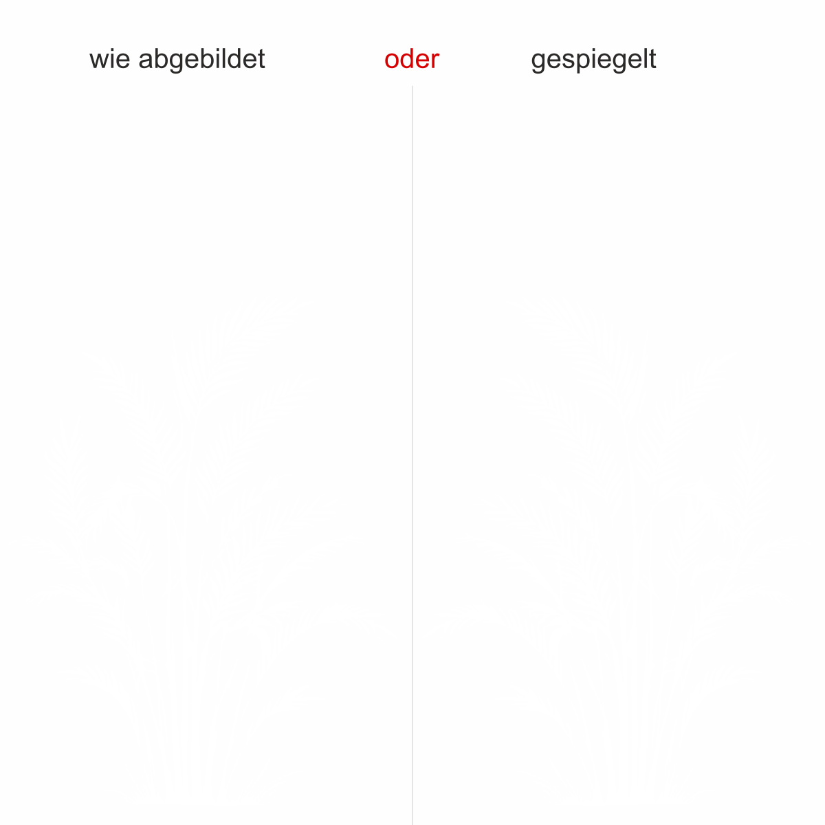 Objekt gespiegelt, Text wie abgebildet = Motiv/Text von außen geklebt und von außen lesbar, jedoch Motiv auf der anderen Seite