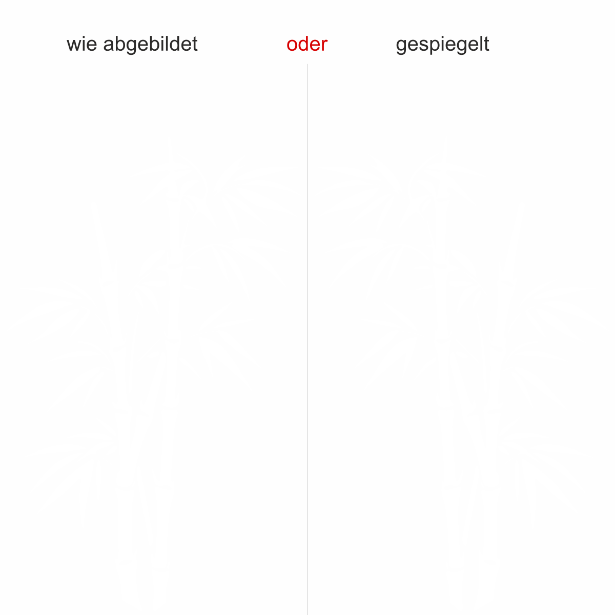 Objekt gespiegelt, Text wie abgebildet = Motiv/Text von außen geklebt und von außen lesbar, jedoch Motiv auf der anderen Seite