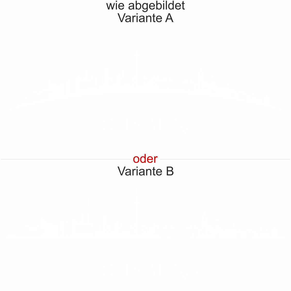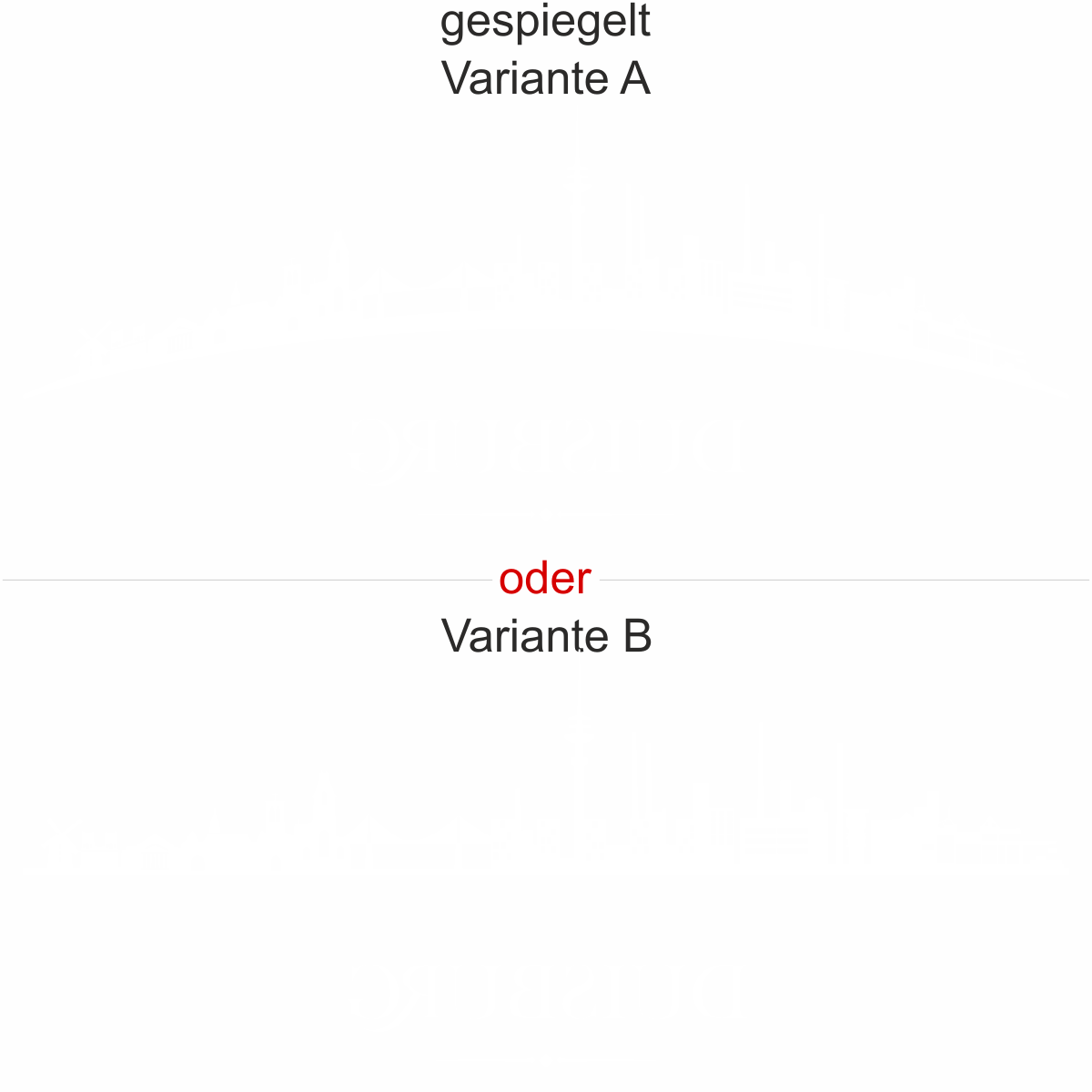 Objekt gespiegelt, Text wie abgebildet = Motiv/Text von außen geklebt und von außen lesbar, jedoch Motiv auf der anderen Seite