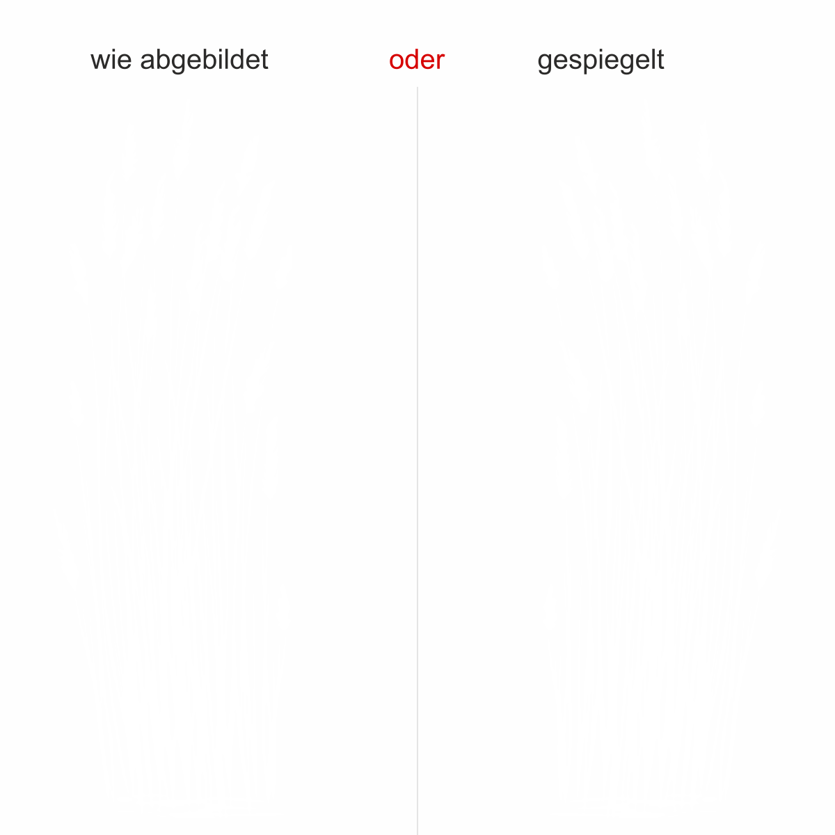 Objekt gespiegelt, Text wie abgebildet = Motiv/Text von außen geklebt und von außen lesbar, jedoch Motiv auf der anderen Seite