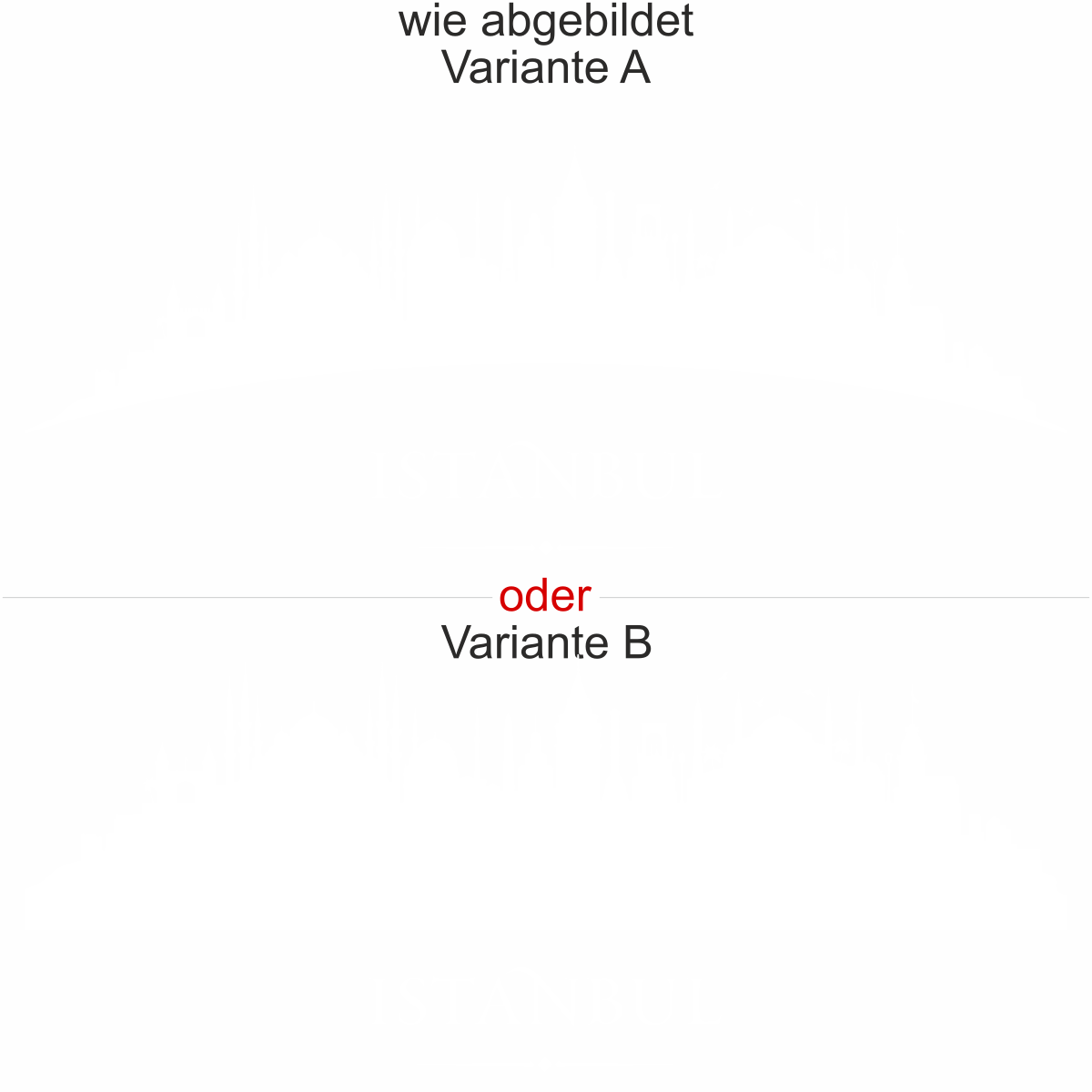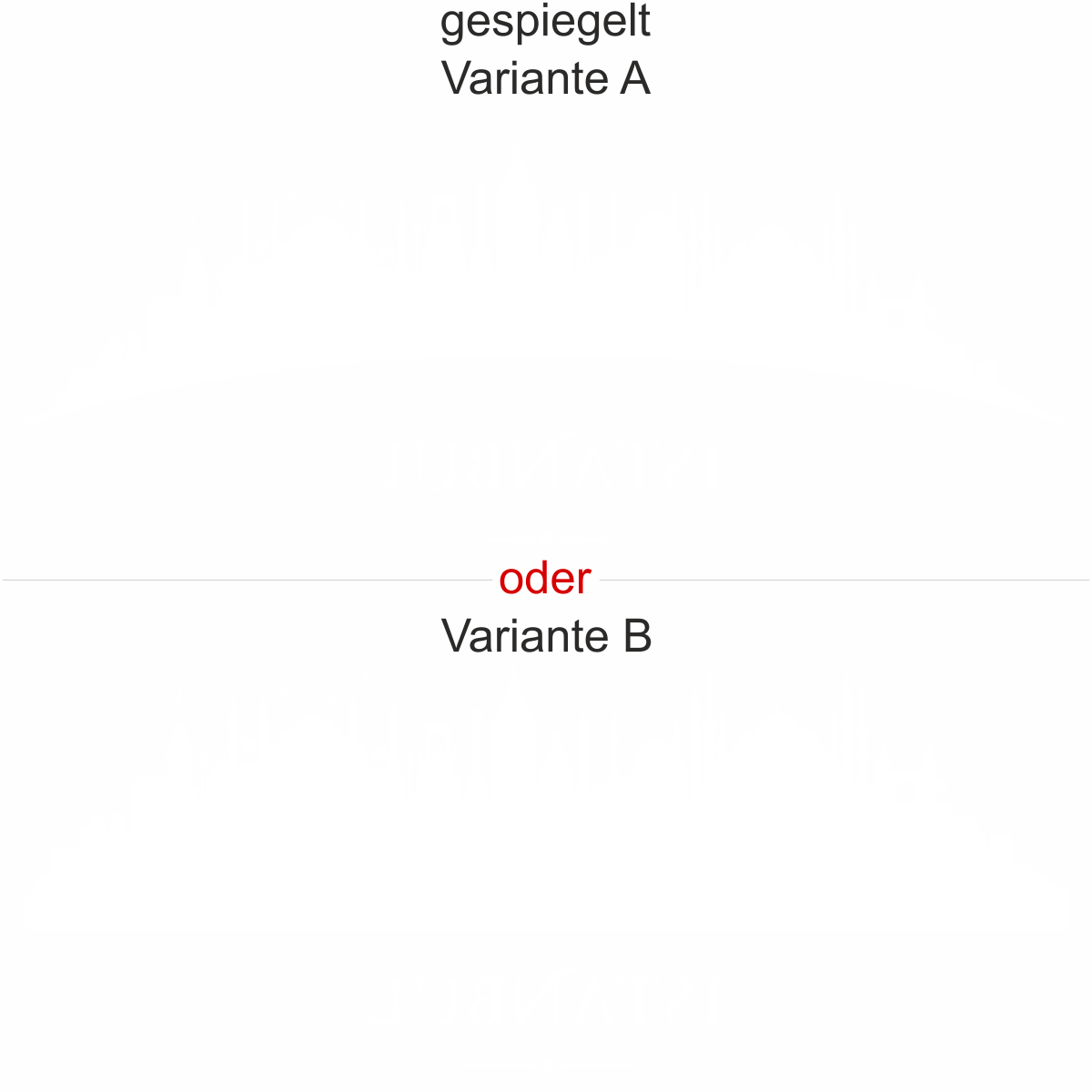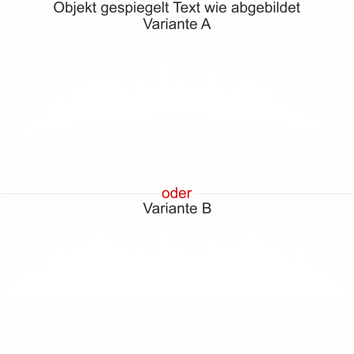 Objekt gespiegelt, Text wie abgebildet = Motiv/Text von innen geklebt und von innen lesbar, jedoch Motiv auf der anderen Seite