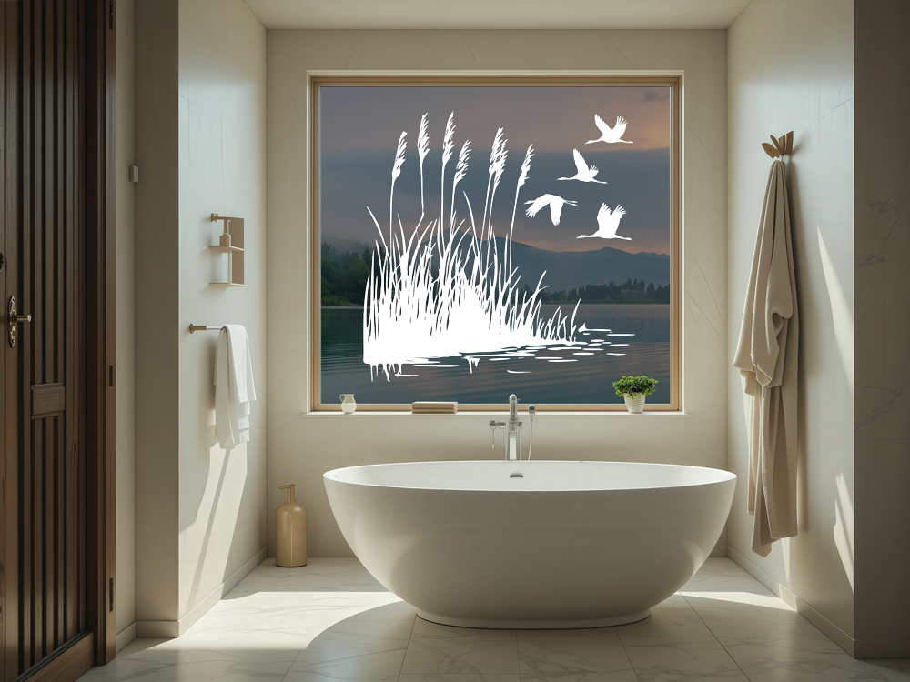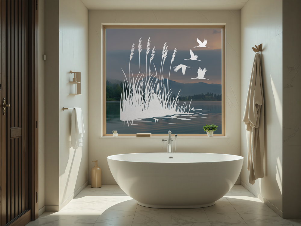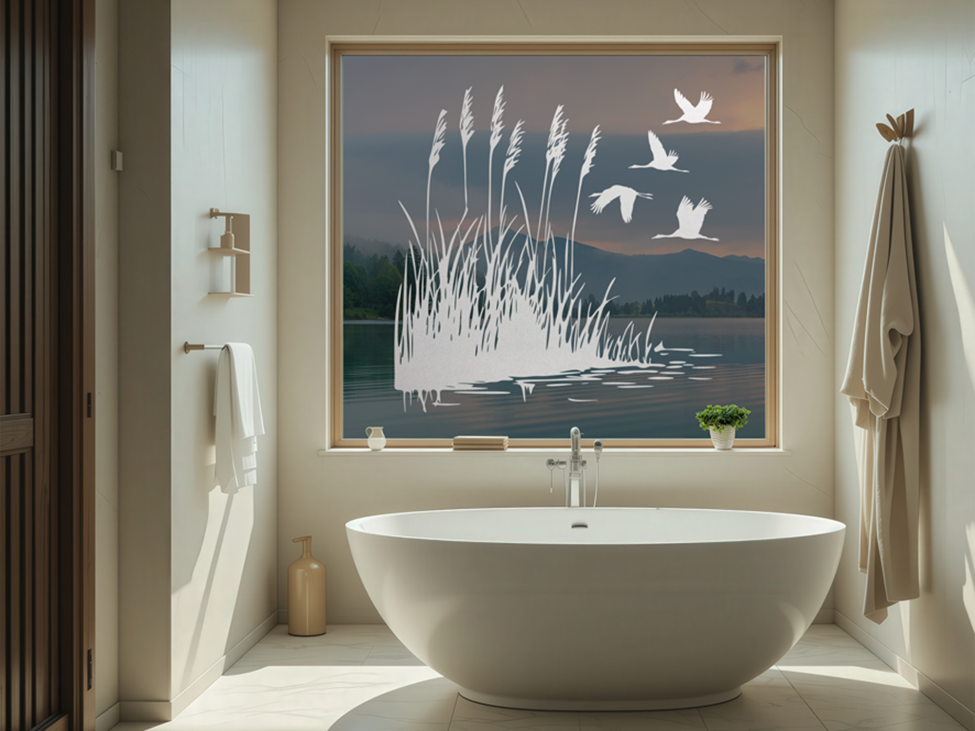 Die Glasdekorfolie kann problemlos im Innen-/Außen- und Nassbereich eingesetzt werden - also auch im Bad- oder Wellnessbereich.
