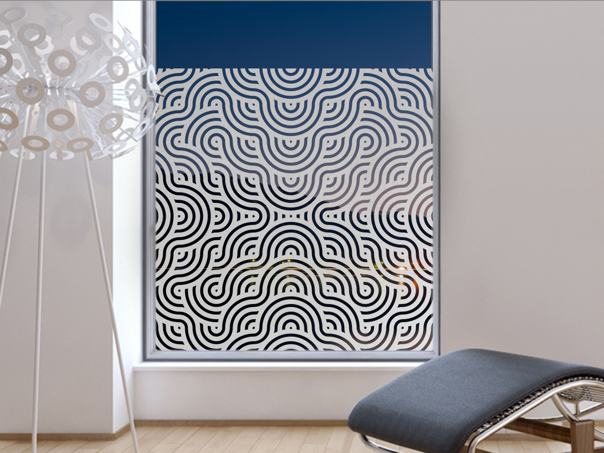 Sichtschutz Milchglasfolie mit geschwungenen ca. 1 cm breiten Dekorlienien