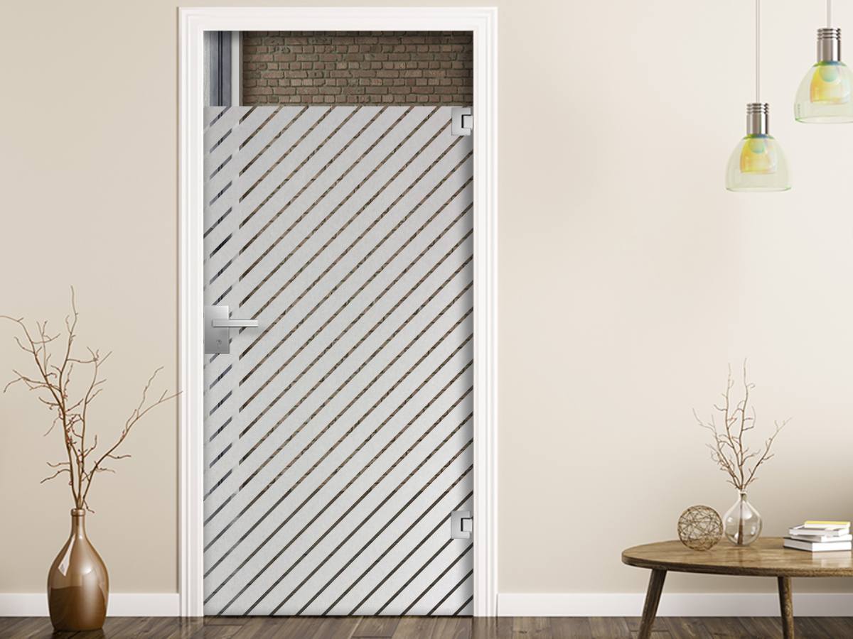 Sichtschutz Milchglasfolie mit ca. 5 cm breiten diagonalen Streifen und ca. 1 cm Abstand dazwischen