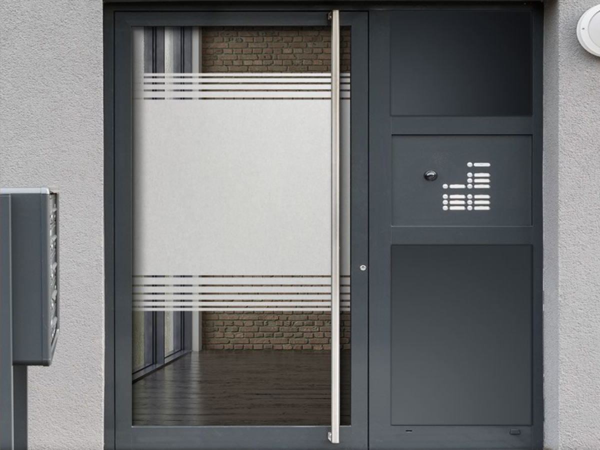 Eine Sichtschutzfolie ist ein selbstklebender Aufkleber aus einer Hochleistungsfolie (Glasdekorfolie) mit einem edlen Sandstrahleffekt, geeignet für glatte Glasflächen. Optisch vergleichbar mit geätztem Glas bzw. Milchglas ist die Sichtschutzfolie blickdicht und dennoch 70% lichtdurchlässig. Tageslicht geht somit kaum verloren. Die Sichtschutzfolie ist konturgeschnitten, ohne Hintergrund und wird montagefertig mit Übertragungspapier geliefert. Dort, wo das Motiv/Text negativ ausgeschnitten ist, bleibt die Glasfläche sichtbar.