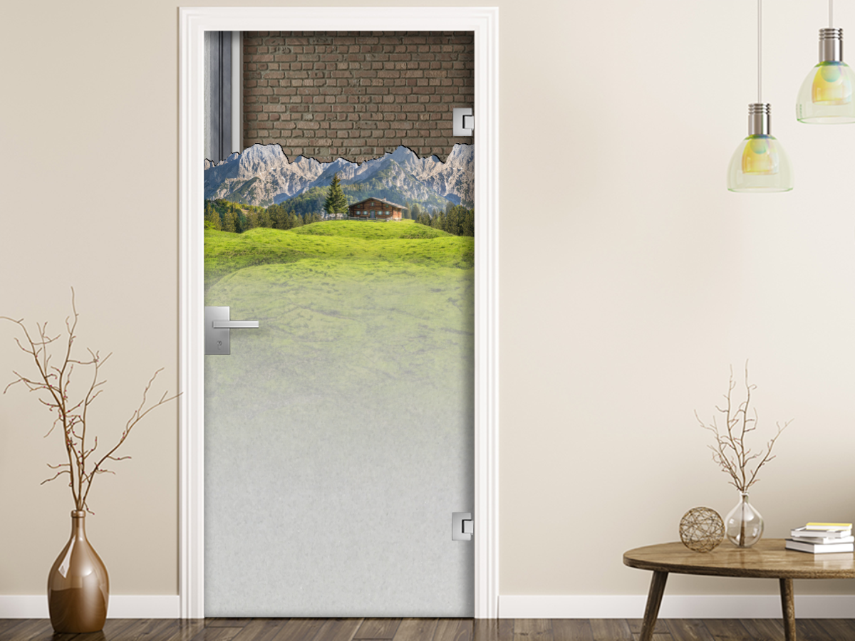 Das Motiv auf einer bedruckten Milchglasfolie ist beidseitig sichtbar. (Rückseite ca. 40-50% abgeschwächt)