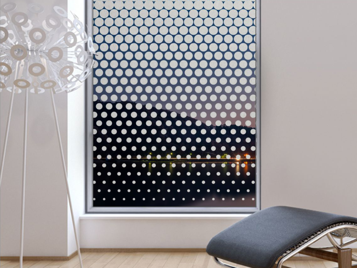 Die Glasfläche sollte glatt sein - also kein Strukturglas. Besteht der Untergrund aus einem milchigen Glas, wird man den Sichtschutz vermutlich nur wenig bzw. sehr dezent erkennen.