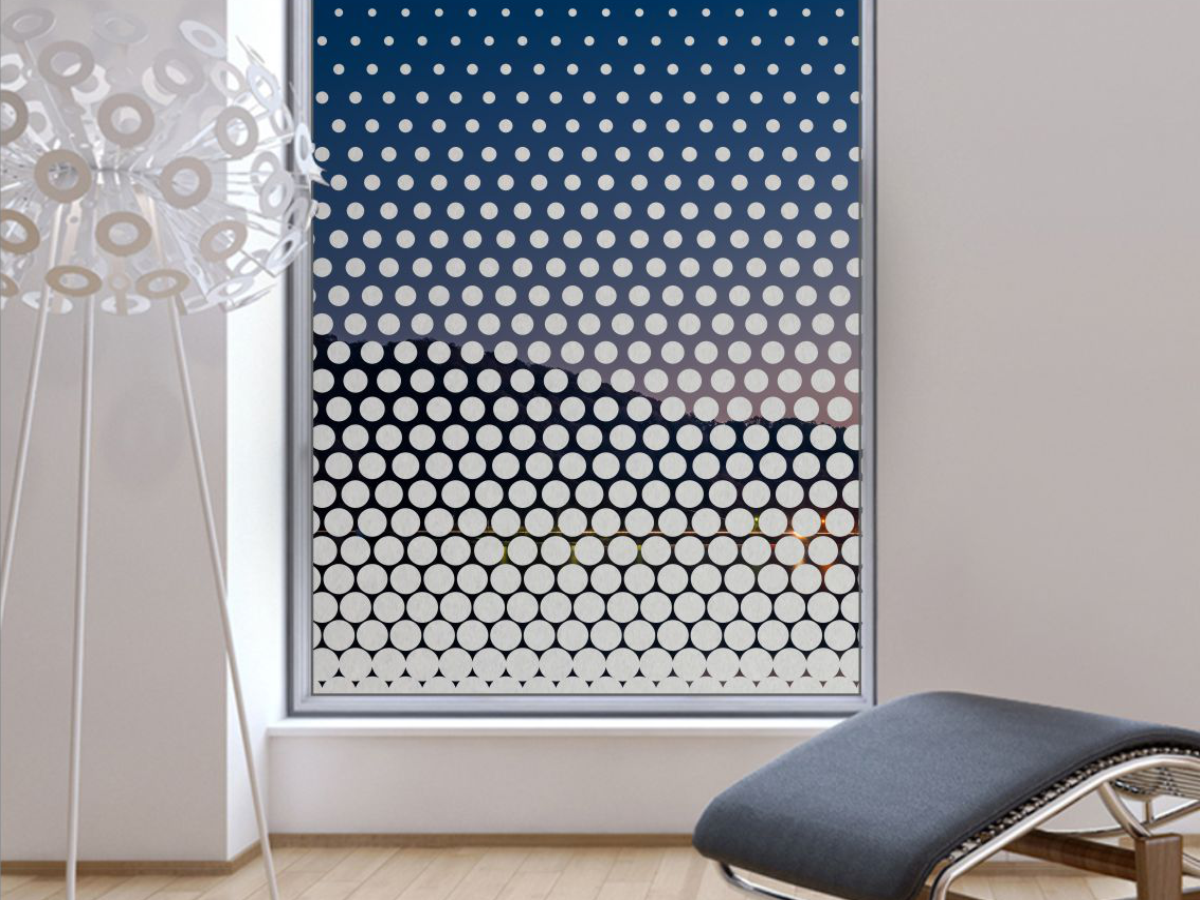 Eine Sichtschutzfolie ist ein selbstklebender Aufkleber aus einer Hochleistungsfolie (Glasdekorfolie) mit einem edlen Sandstrahleffekt, geeignet für glatte Glasflächen. Optisch vergleichbar mit geätztem Glas bzw. Milchglas ist die Sichtschutzfolie blickdicht und dennoch 70% lichtdurchlässig. Tageslicht geht somit kaum verloren. Die Sichtschutzfolie ist konturgeschnitten, ohne Hintergrund und wird montagefertig mit Übertragungspapier geliefert. Dort, wo das Motiv/Text negativ ausgeschnitten ist, bleibt die Glasfläche sichtbar.