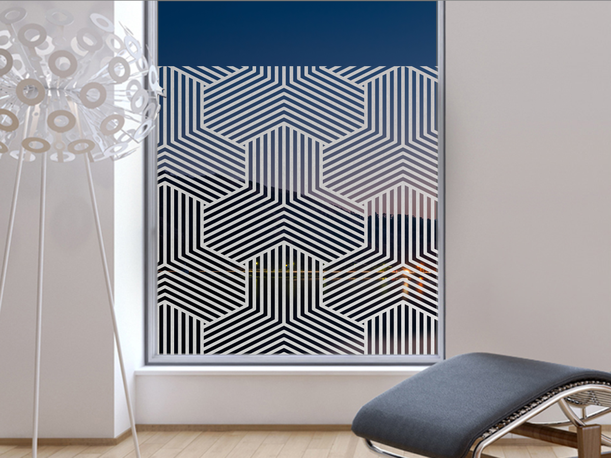 Sichtschutz Milchglasfolie mit einem Muster aus Sechsecken mit ca. 1 cm breiten Linien und ca. 1 cm Abstand dazwischen
