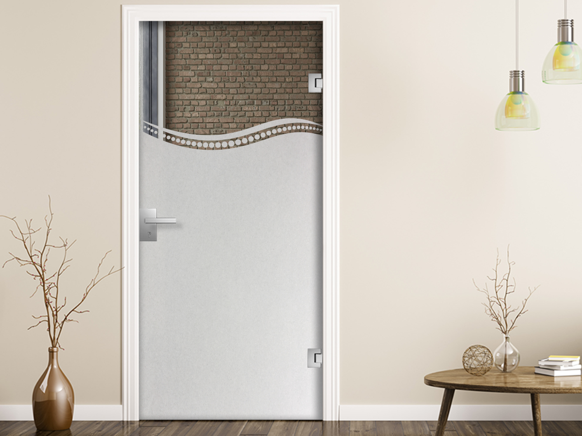 Milchglas Sichtschutzfolie für Glastüren mit horizontalem Punktverlauf zwischen zwei Wellen