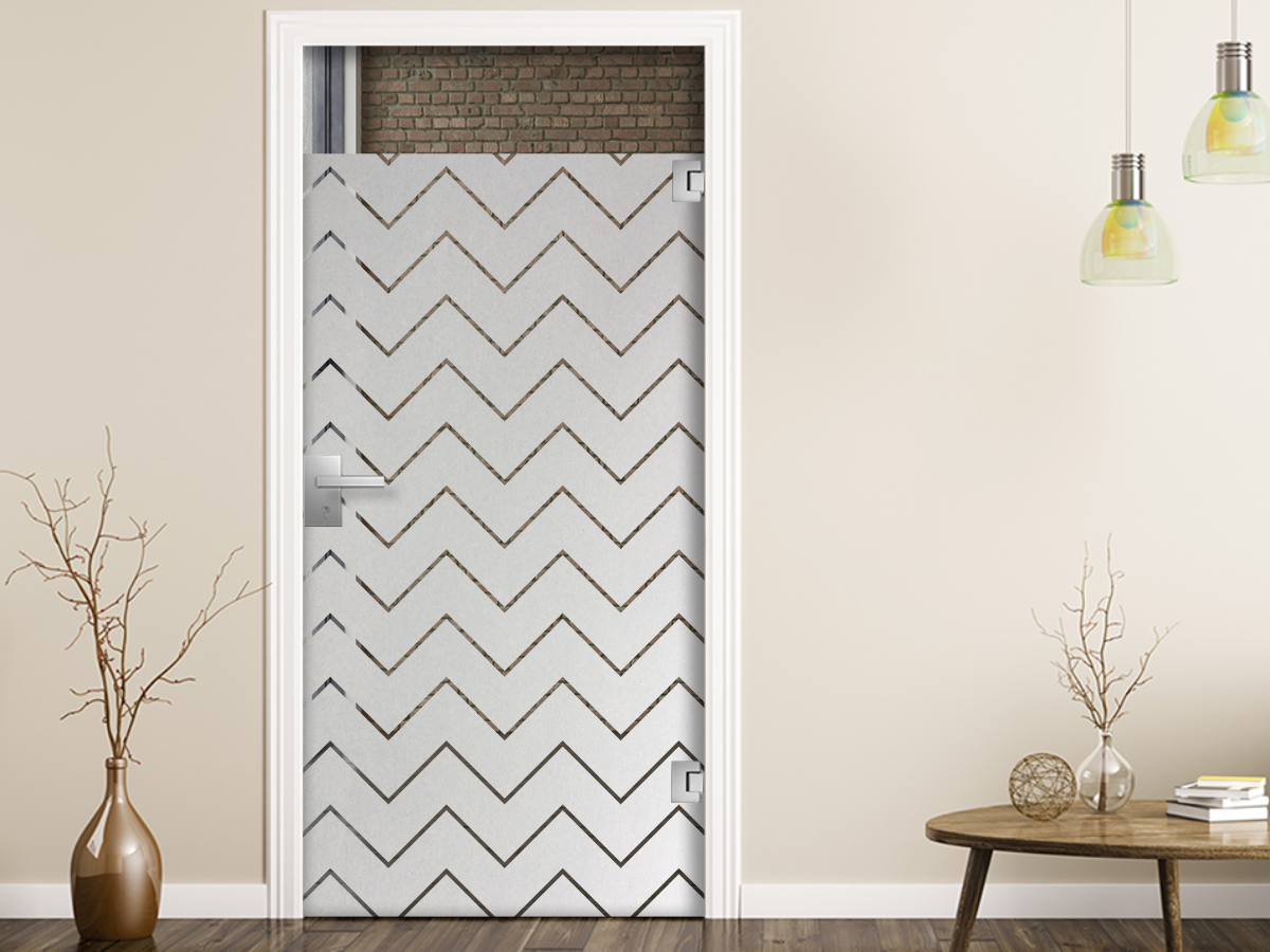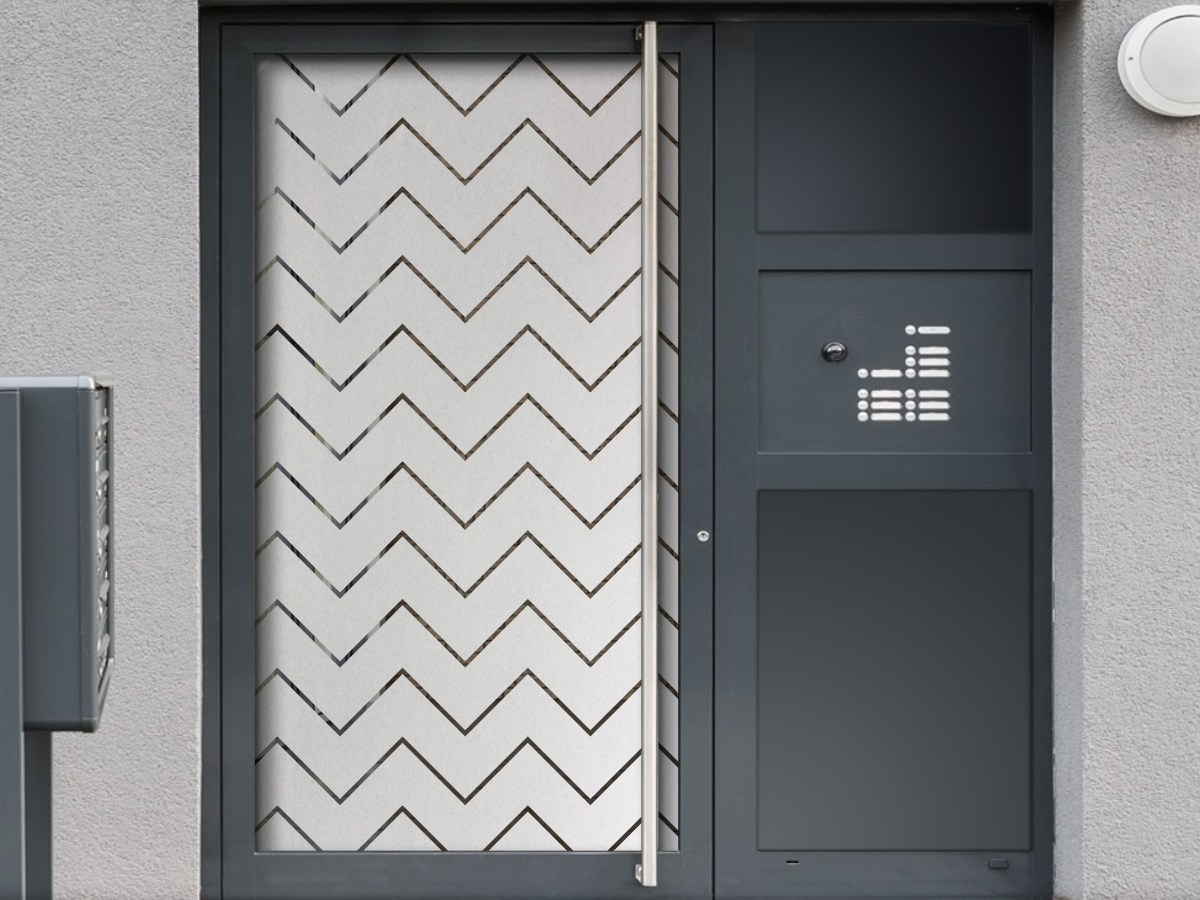 Sichtschutz Milchglasfolie mit ca. 10 cm breiten Zackenstreifen und ca. 1 cm Abstand dazwischen