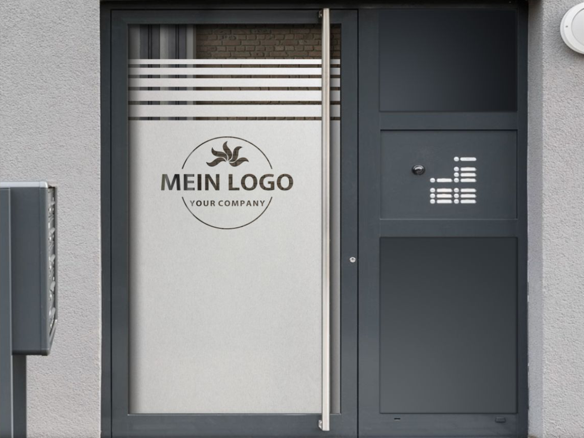 Preview: Logo als Sichtschutzfolie für Gewerbe auf Eingangstür