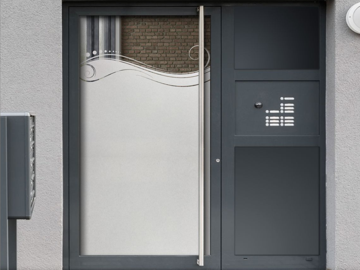 Eine Sichtschutzfolie ist ein selbstklebender Aufkleber aus einer Hochleistungsfolie (Glasdekorfolie) mit einem edlen Sandstrahleffekt, geeignet für glatte Glasflächen. Optisch vergleichbar mit geätztem Glas bzw. Milchglas ist die Sichtschutzfolie blickdicht und dennoch 70% lichtdurchlässig. Tageslicht geht somit kaum verloren. Die Sichtschutzfolie ist konturgeschnitten, ohne Hintergrund und wird montagefertig mit Übertragungspapier geliefert. Dort, wo das Motiv/Text negativ ausgeschnitten ist, bleibt die Glasfläche sichtbar.