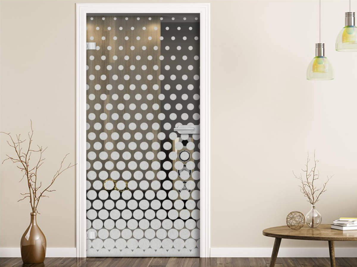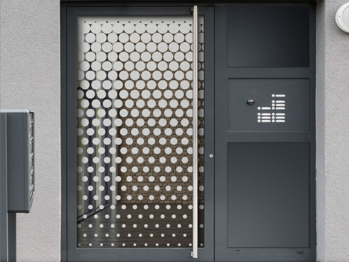 Eine Sichtschutzfolie ist ein selbstklebender Aufkleber aus einer Hochleistungsfolie (Glasdekorfolie) mit einem edlen Sandstrahleffekt, geeignet für glatte Glasflächen. Optisch vergleichbar mit geätztem Glas bzw. Milchglas ist die Sichtschutzfolie blickdicht und dennoch 70% lichtdurchlässig. Tageslicht geht somit kaum verloren. Die Sichtschutzfolie ist konturgeschnitten, ohne Hintergrund und wird montagefertig mit Übertragungspapier geliefert. Dort, wo das Motiv/Text negativ ausgeschnitten ist, bleibt die Glasfläche sichtbar.
