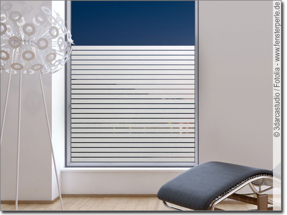 Sichtschutz Milchglasfolie mit ca. 3 cm hohen horizontalen Streifen und ca. 0,5 cm Abstand dazwischen
