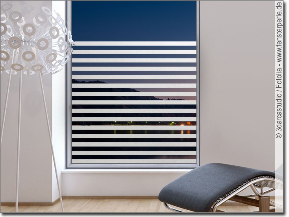 Sichtschutz Milchglasfolie mit ca. 3 cm hohen horizontalen Streifen und ca. 3 cm Abstand dazwischen