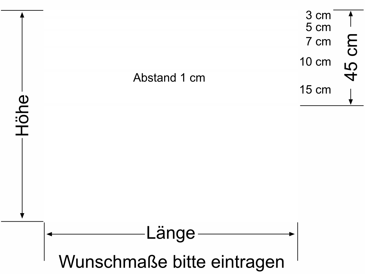 Sollte die gewünschte Höhe weniger als 45 cm betragen, so werden die Streifen proportional angepasst