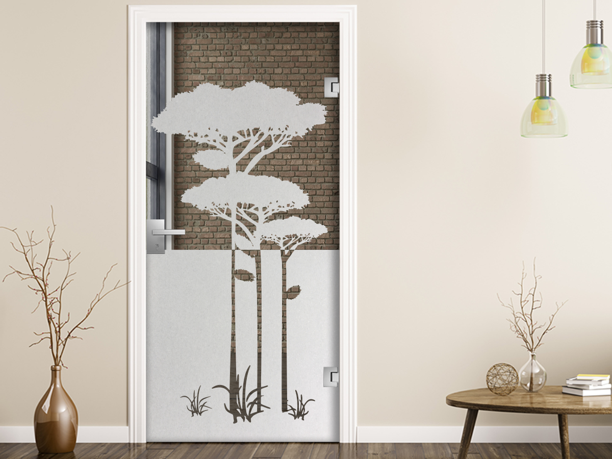 Milchglas Sichtschutzfolie mit zwei Savannenbäumen in unterschiedlichen Größen