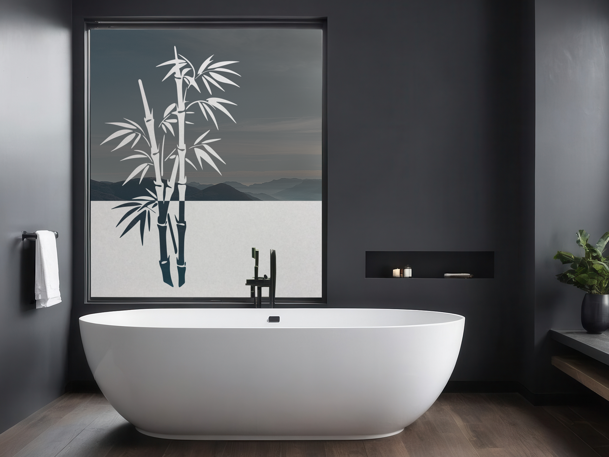Sichtschutz Fensterfolie mit dekorativer Bambuspflanze