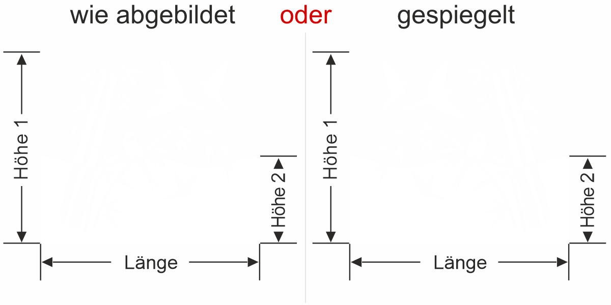 Anschließend tragen Sie die Maße in der Bestellmaske in die Kästchen „Höhe 1“ und „Höhe 2“ sowie „Länge“ ein.