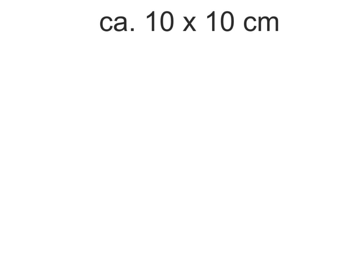 Objekt gespiegelt, Text wie abgebildet = Motiv/Text von außen geklebt und von außen lesbar, jedoch Motiv auf der anderen Seite