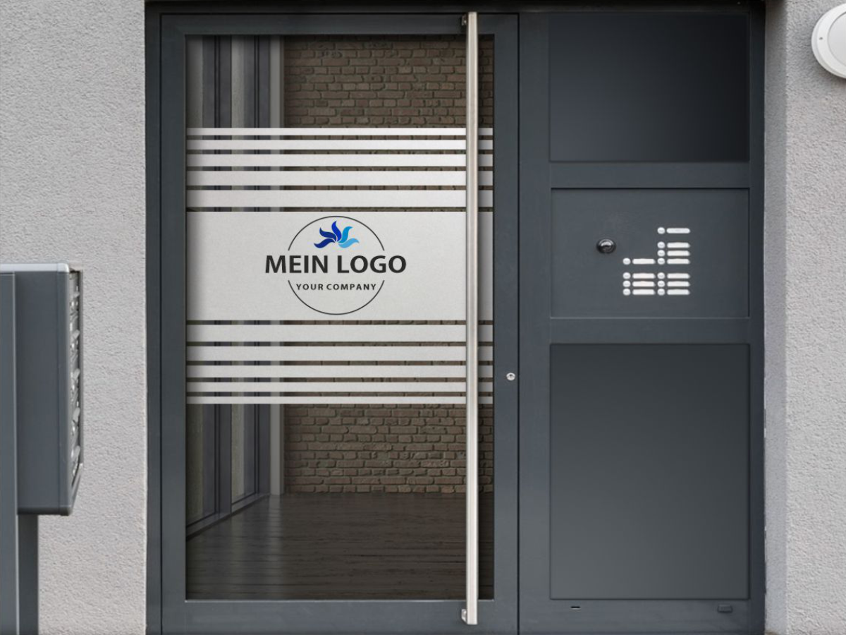 Wir passen die Größe und Platzierung des Logos innerhalb der Sichtschutzfolie so an, dass ein harmonisches Gesamtbild entsteht