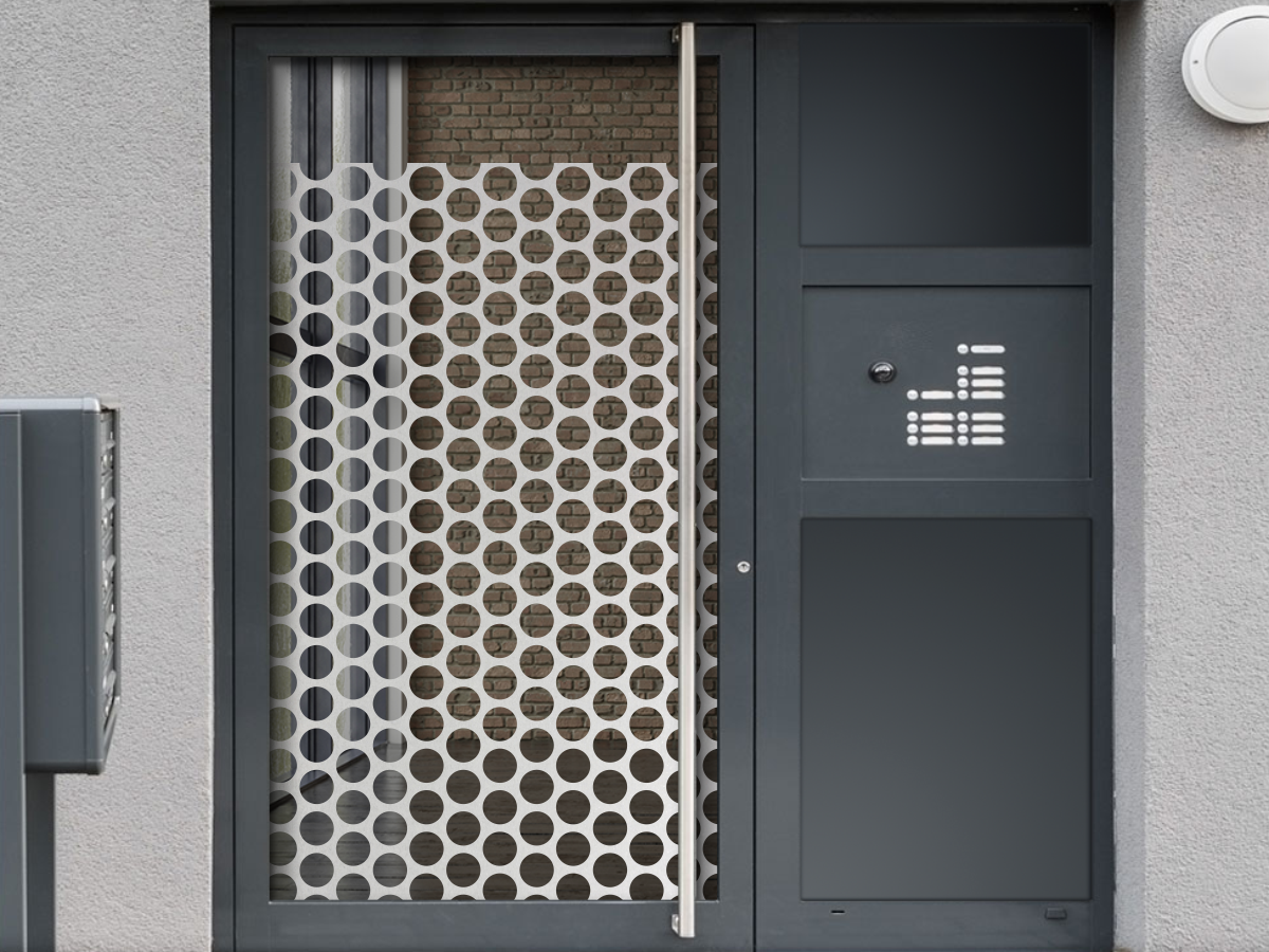 Sichtschutzfolie Gewerbe Kreismuster mit ca. 7 cm großen Kreisen und ca. 1,5 cm Abstand dazwischen