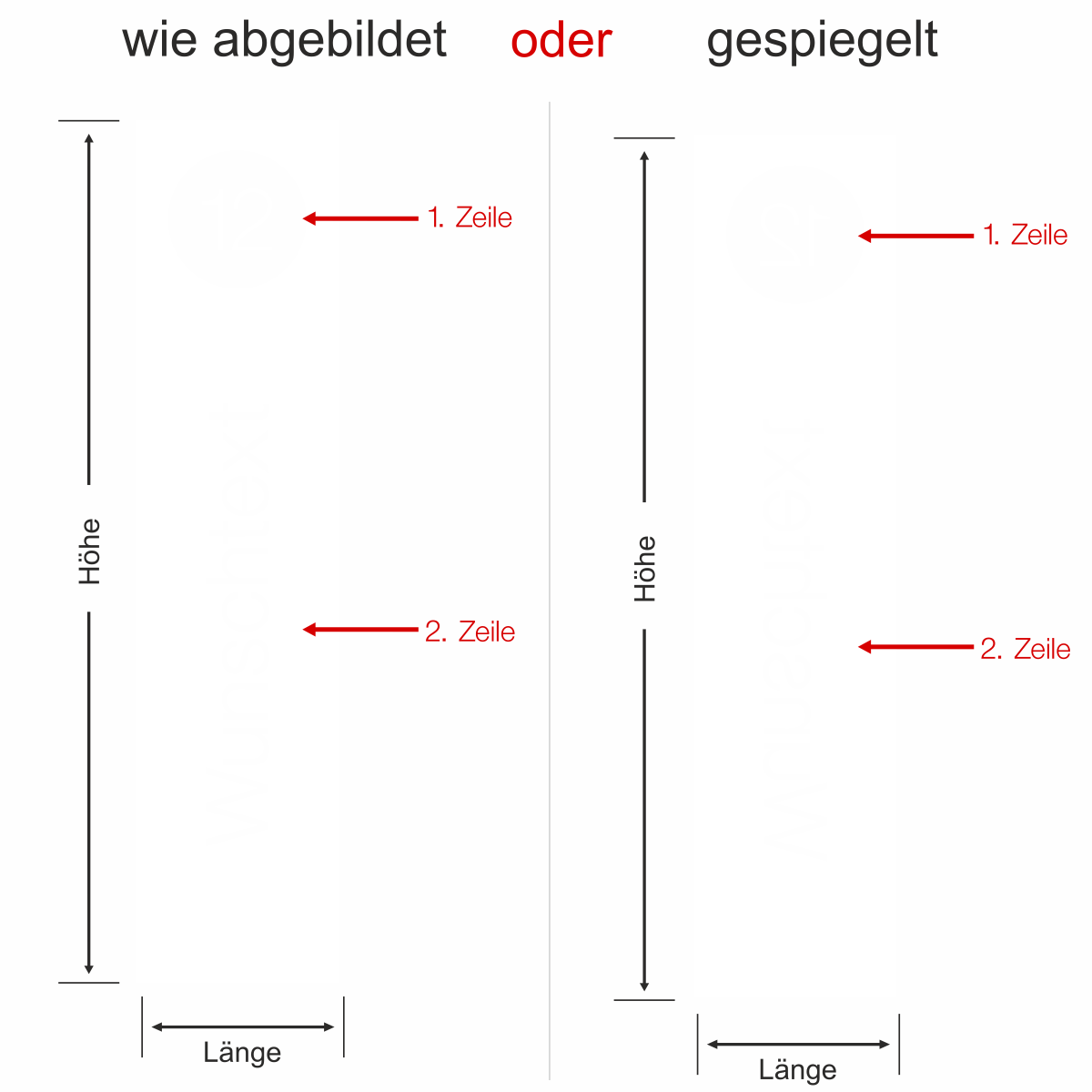 Spezielle Wünsche zur Gestaltung teilen Sie uns bitte unter Anmerkung im Bestellvorgang mit.