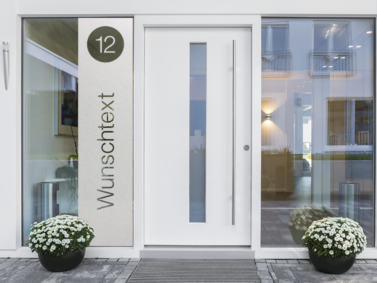 Milchglasfolie mit Hausnummer und Wunschtext