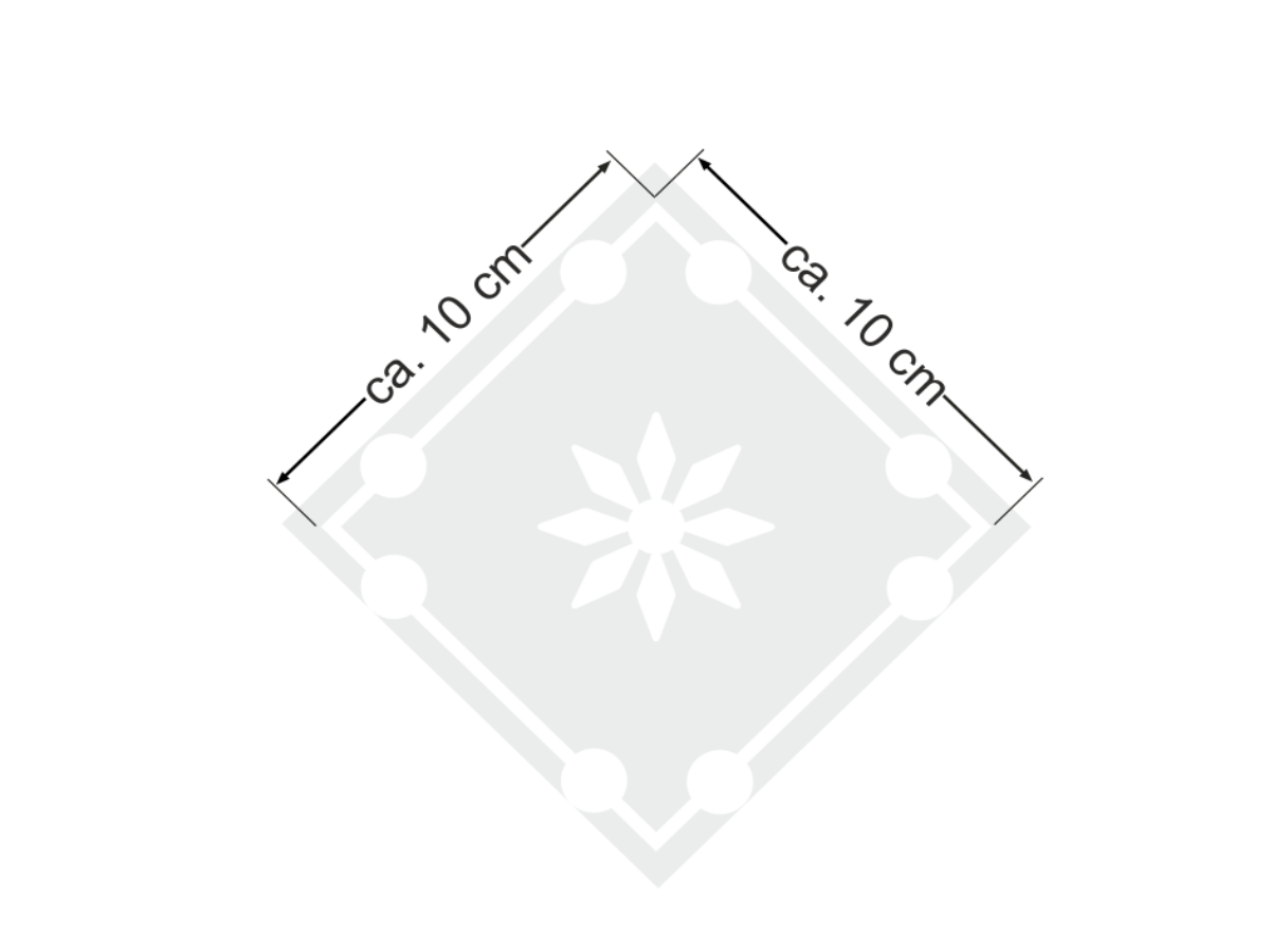 Legen Sie den Aufkleber auf einen geraden und harten Untergrund (Tisch) mit dem Rücken nach oben. Danach entfernen Sie das Trägerpapier (Papier mit aufgedruckten Kästchen) sehr vorsichtig in einem flachen Winkel. Achten Sie bitte darauf, dass das Motiv nicht einreißt und alle Elemente auf dem selbstklebenden Übertragungsband (milchiges, leicht transparentes Papier) bleiben. Sollte dies nicht der Fall sein, gehen Sie mit dem Trägerpapier zurück, drücken Sie die Stelle mit dem Finger wieder an und wiederholen Sie den Vorgang.