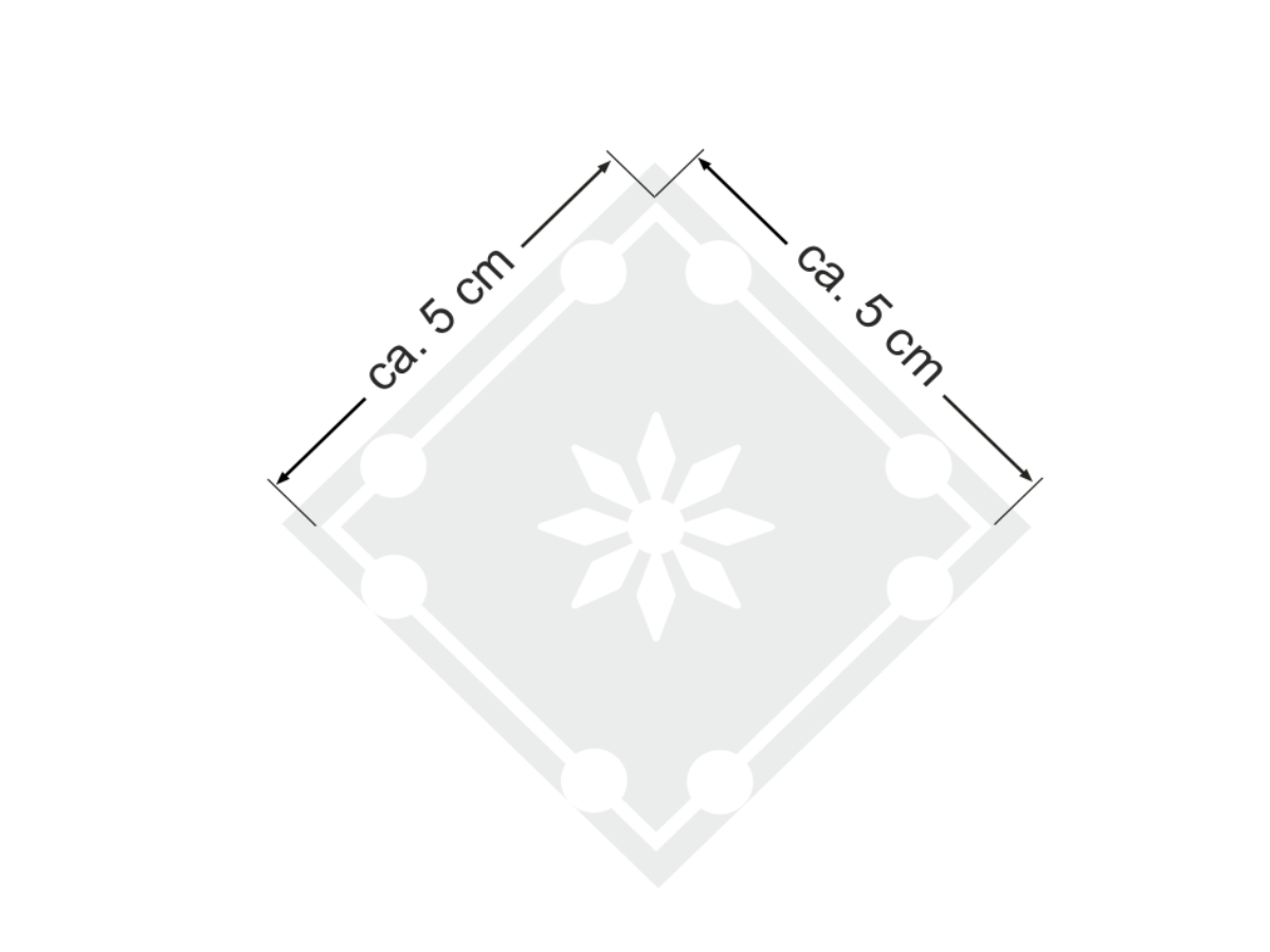Legen Sie den Aufkleber auf einen geraden und harten Untergrund (Tisch) mit dem Rücken nach oben. Danach entfernen Sie das Trägerpapier (Papier mit aufgedruckten Kästchen) sehr vorsichtig in einem flachen Winkel. Achten Sie bitte darauf, dass das Motiv nicht einreißt und alle Elemente auf dem selbstklebenden Übertragungsband (milchiges, leicht transparentes Papier) bleiben. Sollte dies nicht der Fall sein, gehen Sie mit dem Trägerpapier zurück, drücken Sie die Stelle mit dem Finger wieder an und wiederholen Sie den Vorgang.