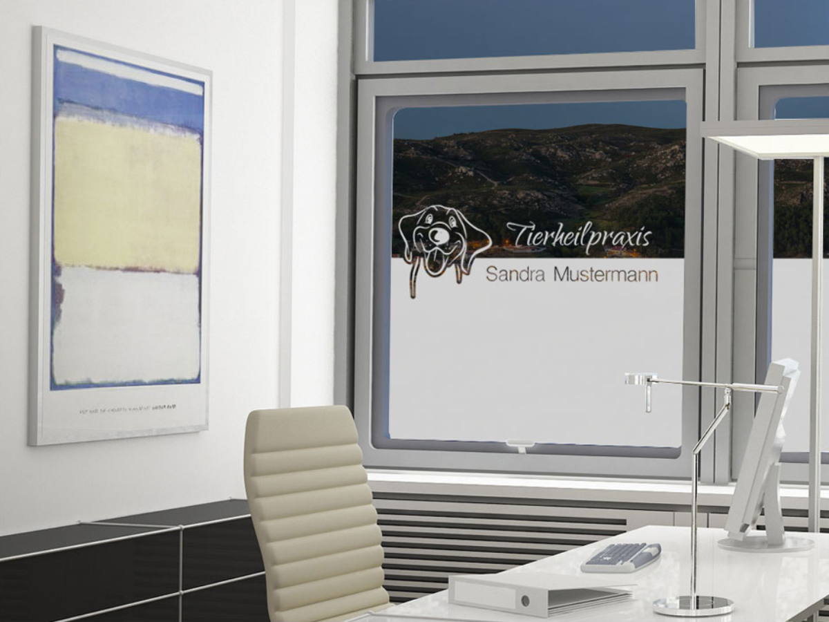 Eine Sichtschutzfolie ist ein selbstklebender Aufkleber aus einer Hochleistungsfolie (Glasdekorfolie) mit einem edlen Sandstrahleffekt, geeignet für glatte Glasflächen. Optisch vergleichbar mit geätztem Glas bzw. Milchglas ist die Sichtschutzfolie blickdicht und dennoch 70% lichtdurchlässig. Tageslicht geht somit kaum verloren. Die Sichtschutzfolie ist konturgeschnitten, ohne Hintergrund und wird montagefertig mit Übertragungspapier geliefert. Dort, wo das Motiv/Text negativ ausgeschnitten ist, bleibt die Glasfläche sichtbar.